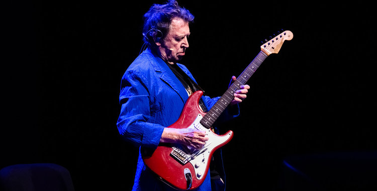The Police’s guitarist returned to San Francisco with a compact, cinematic solo show—loop-driven guitar, road stories, and morphing photographs—ending in a sing-along built for nostalgia and tone-chasers alike.