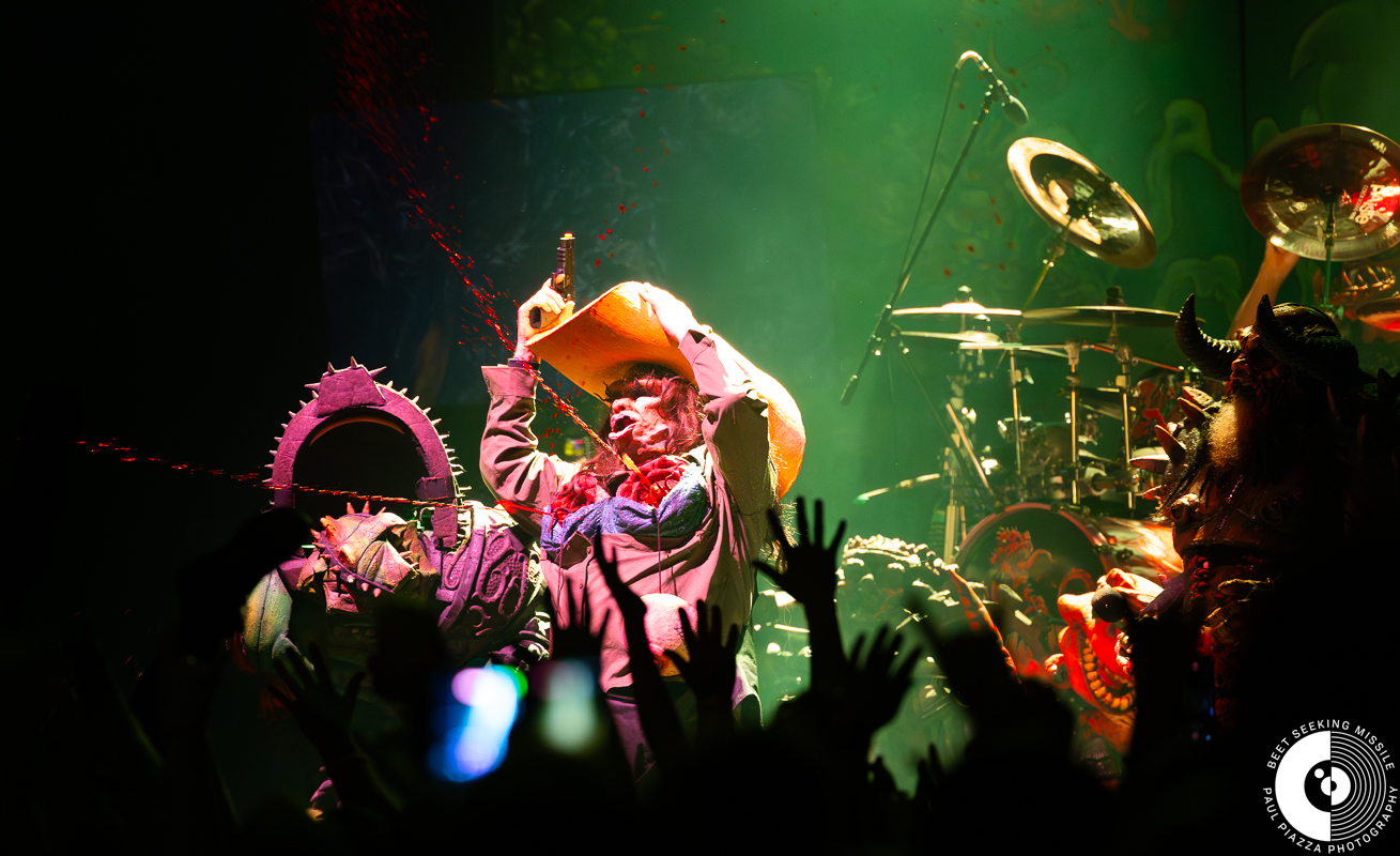 They have weathered numerous lineup changes, the tragic death of Oderus Ungerus (Dave Brockie) in 2014 and a proclivity unseen for an ongoing roadshow of this magnitude. The band’s most recent album, 2022’s “The new dark ages” was their fifteenth record. And while fans know and love their music, they always come back for the highly anticipated splatter show. In addition to the kicking things off with bizarre sci-fi plot, the band will generally toss in the obligatory slaughter of contemporary social figures and this tour was no different.