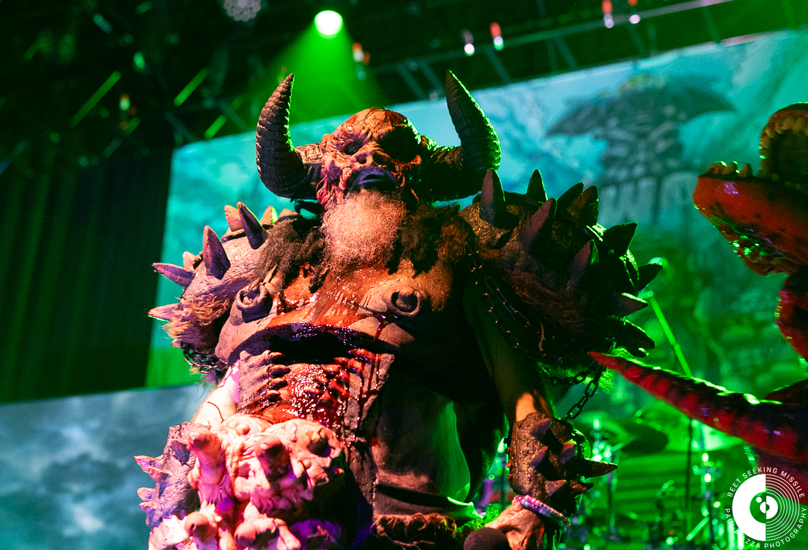 GWAR, the sci-fi barbaric flingers of gore, heavy metal, and humor descended upon Sacramento’s newest venue Channel 24 recently. These nomadic hordes came equipped with high volumes of blood and other scatalogical matter to spray into the crowd in during their nonstop, raucous set. And naturally, the devoted GWAR crowd absolutely soaked every minute of it.