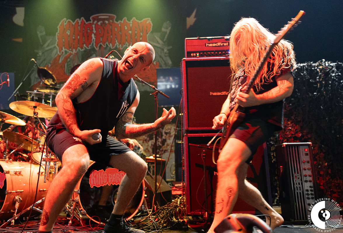 Opening the show were Austrailia’s King Parrot, a grindcore band that formed in Melbourne, Australia in 2010. Led by expressive screamer Matt Young and the barefoot guitarist Ari White, the band blasted through a powerful set featured songs going back to their debut Bite Your Head Off. The band’s recent record, A Young Person’s Guide to King Parrot, features such family-oriented cuts as “Fuck You and the Horse You Rode In On” and “Cunning as Dunny Rat.” They set the tone for what turned out to be an exceptional night of heavy music, gore, and lunacy at Channel 24.