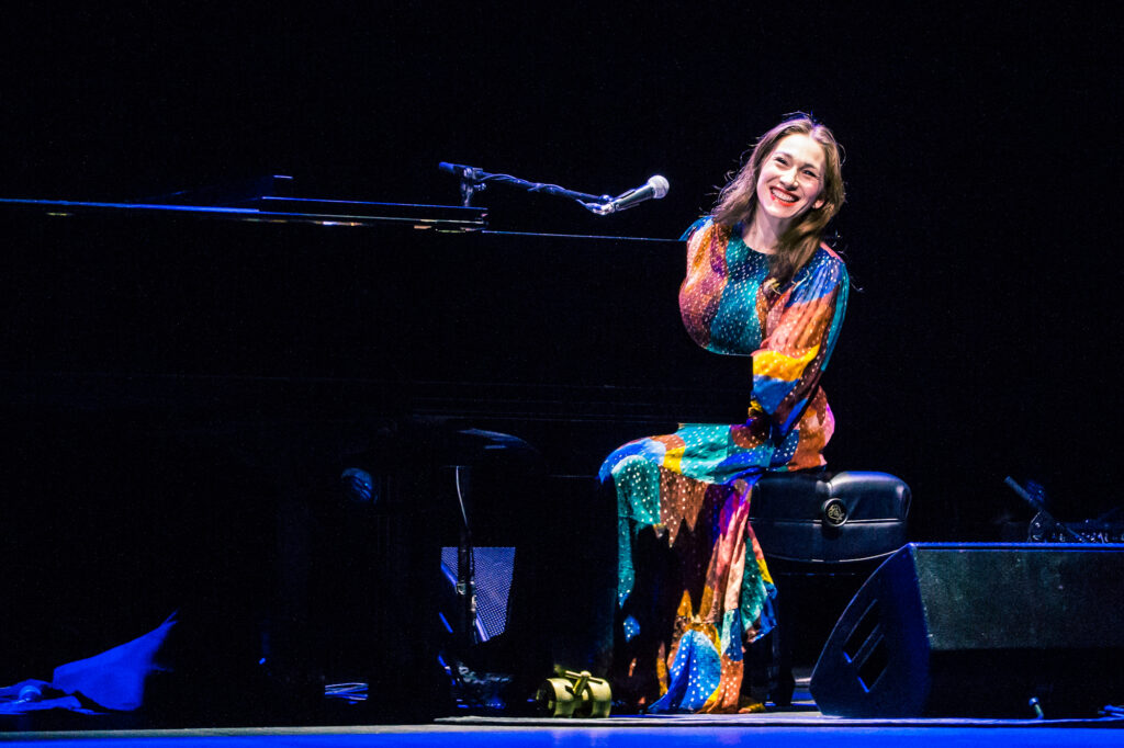 Spektor walked toward the piano as the crowd cheered in encouragement. She got comfortable next to her hot tea for the next song, “Folding Chair,” an energetic and lighthearted tune narrating contemplation on the beach. Spektor even animates the song with dolphin vocal tones and concludes the melody with a sweet “I love you.” Her voice is so unique to her, and the audience loves to hear her sing, especially repeating those “I love yous” in such an adorable way.