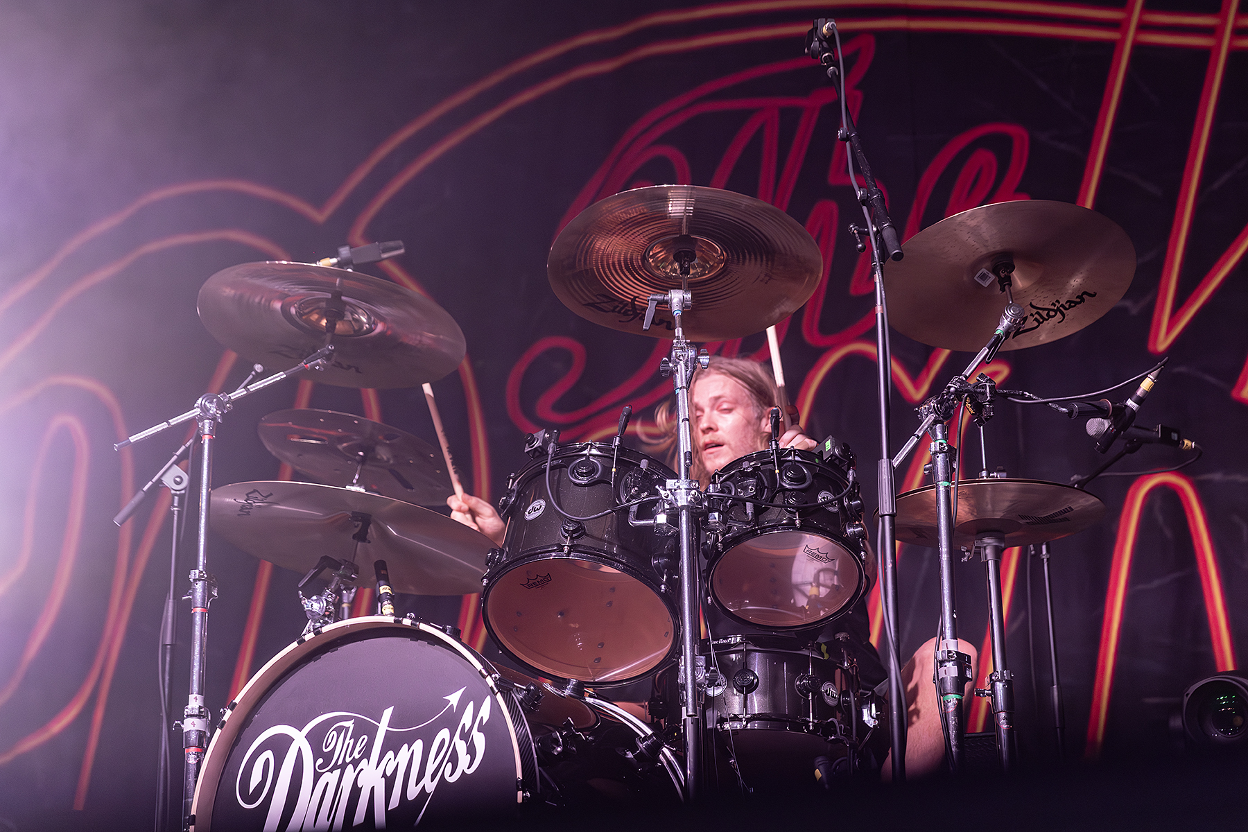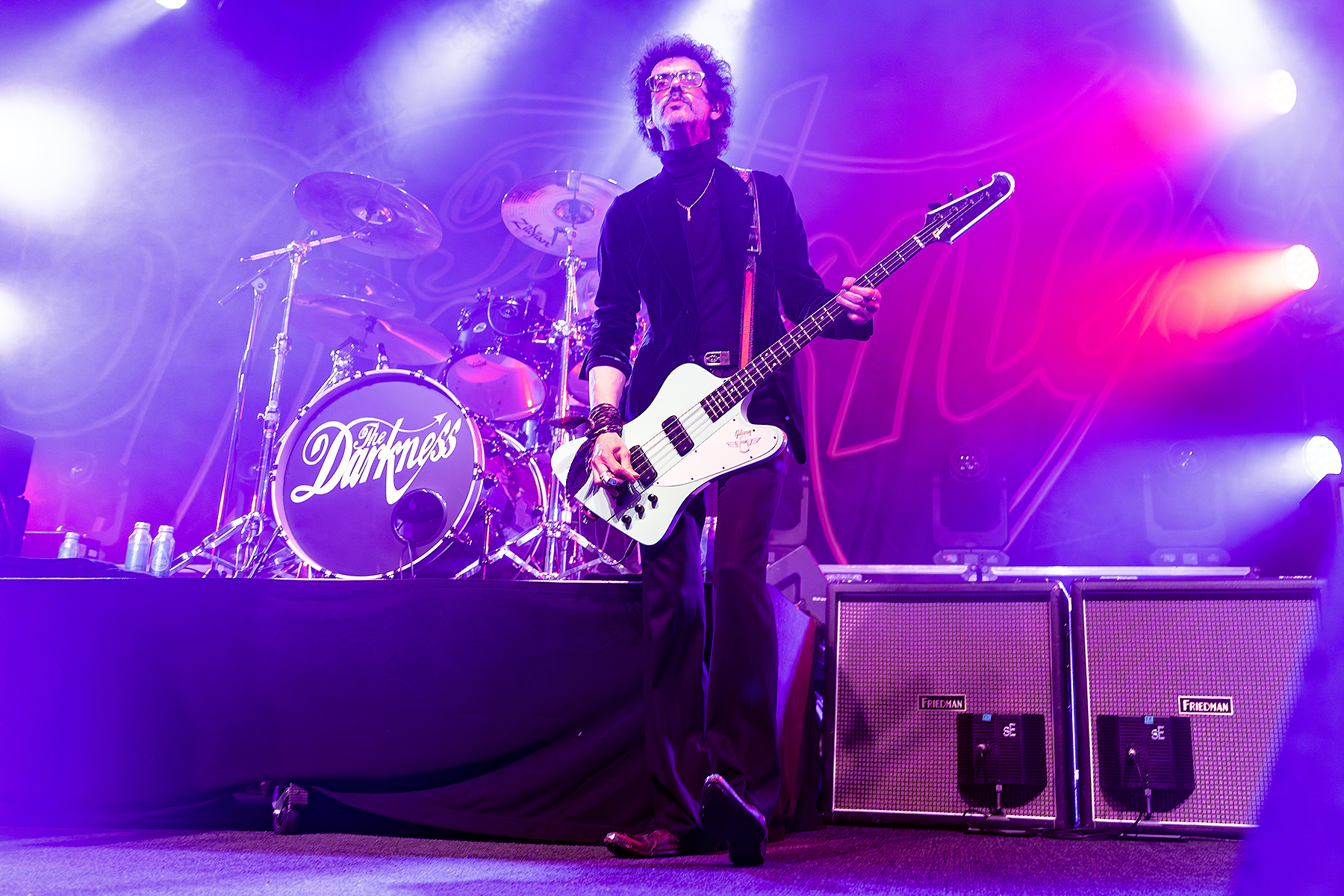 Part of The Darkness’s magic is their ability to balance technical proficiency with tongue-in-cheek performance. Dan Hawkins’ guitar work was tight and punchy, weaving classic heavy-metal riffing with a melodic confidence that powered the night’s best moments. Meanwhile, bassist Frankie Poullain strutted across the stage like a man who knew he was anchoring the entire operation, laying down grooves that felt both playful and authoritative.